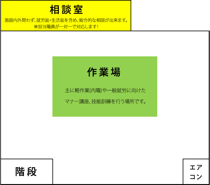 施設のご案内ページです。静岡市駿河区の障害就活なら就労支援A型事業所ジャスティス